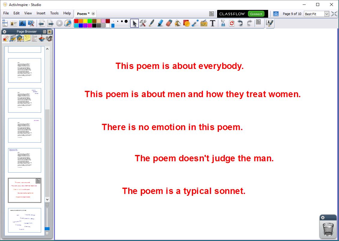 To give this discussion focus, after some initial to and fro, students are given a series of provocative statements about the poem to discuss in pairs and groups. These are then debated by the class.