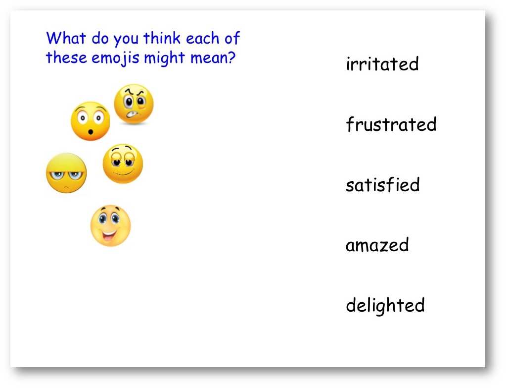 Next, I asked pupils to think about these five emotions, and we matched them to the emojis.
