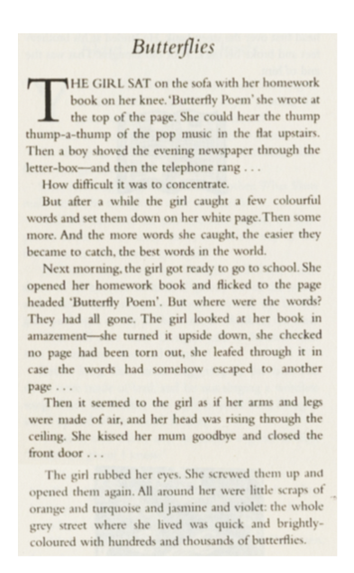 Like all the stories in the collection, it is short enough to read more than once in a single lesson and – importantly – it is the sort of length of story which children themselves might write. The situation it describes and the way the narrative unfolds is familiar enough, but also surreal enough, to grab the children’s interest and imagination, and it offers some challenging ideas to explore.