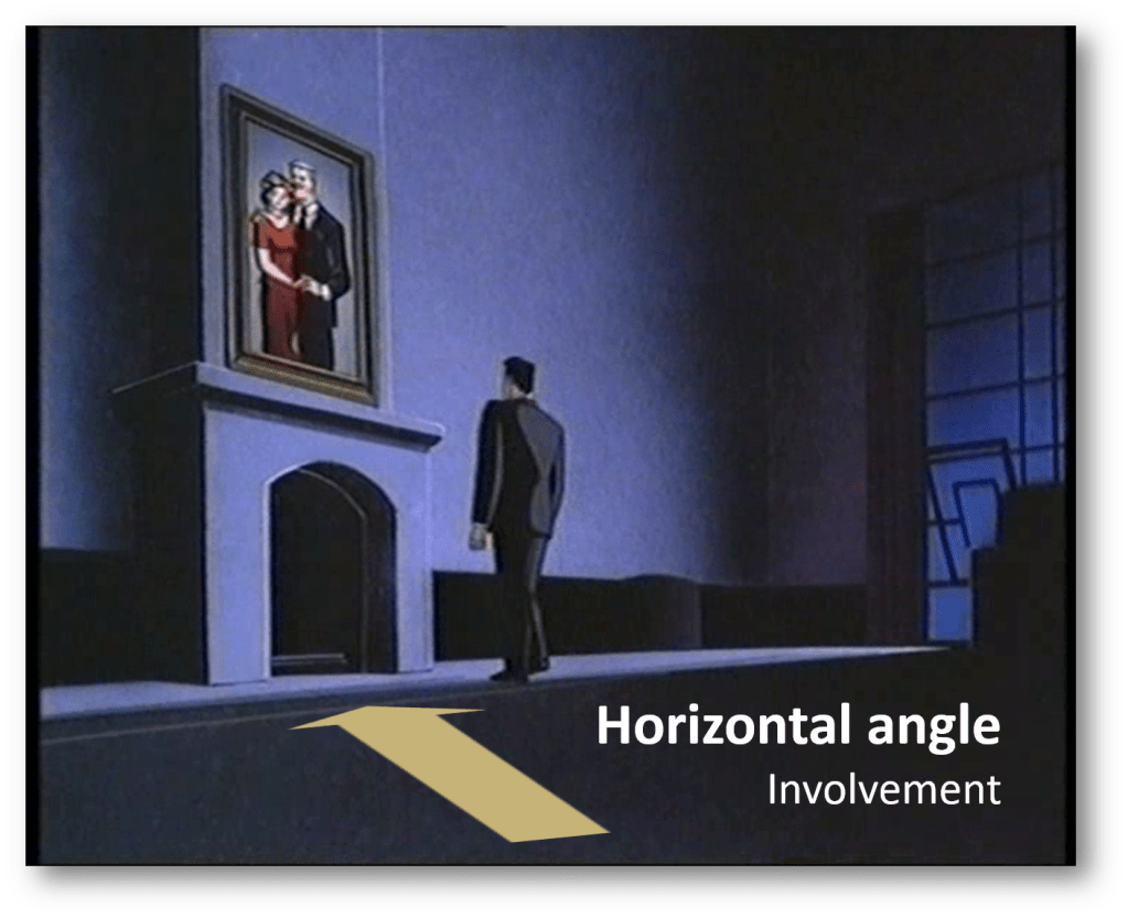 Meanwhile, horizontal angle affects the viewer’s sense of involvement – subtly different from engagement. In this image, we are positioned at an oblique angle to the action, detaching us and suggesting objectivity.