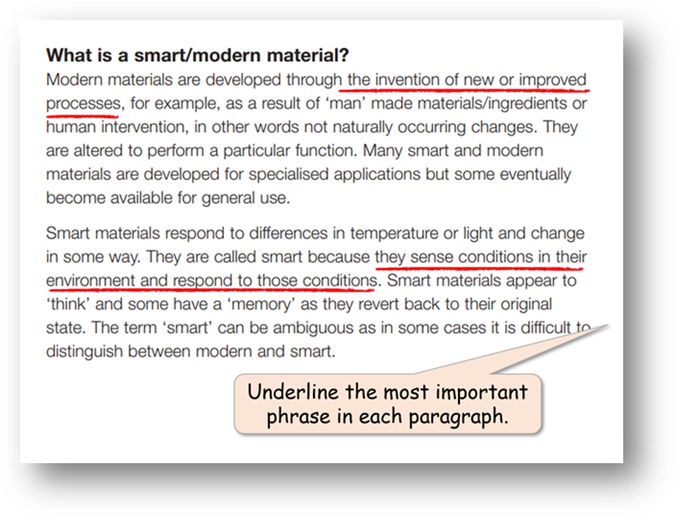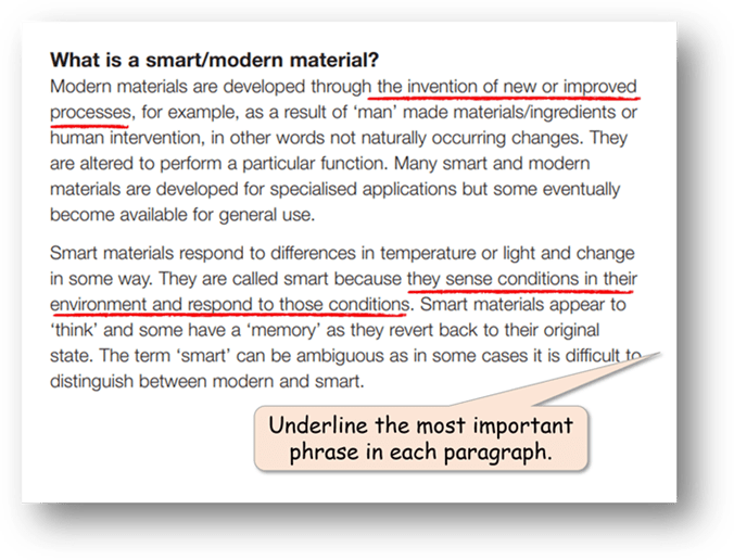- This can be as simple as annotating the text, as looking out for given features or elements, or as selecting ‘important’ or ‘interesting’ words or phrases.