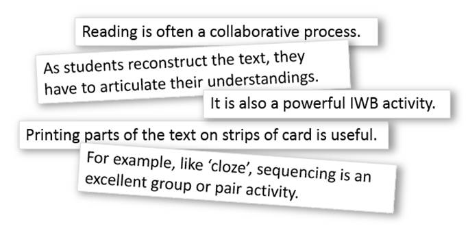 - But it might also involve a little more preparation – a cloze or sequencing activity or working with a scrambled version of the text, for example