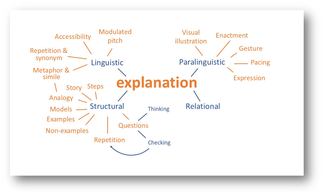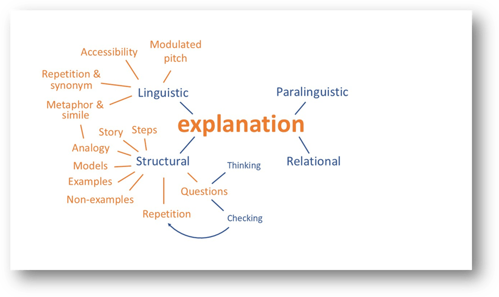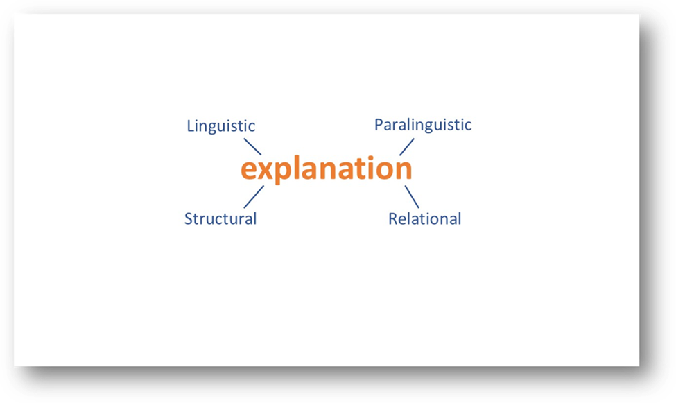 Very broadly, the effectiveness of a classroom explanation depends on four aspects: the language selected, the methods of explanation used, the way the teacher speaks, and the degree to which they have connected with their listeners.