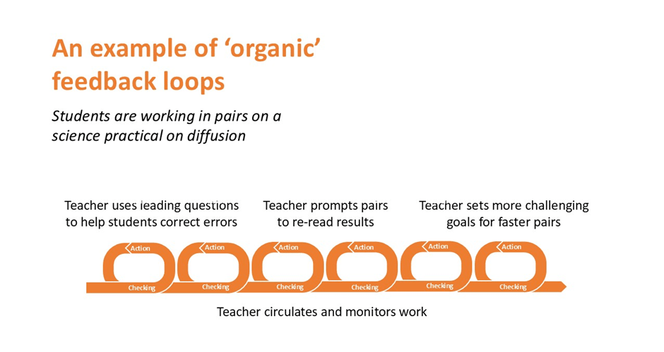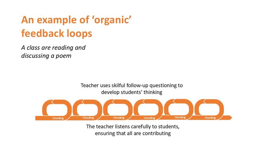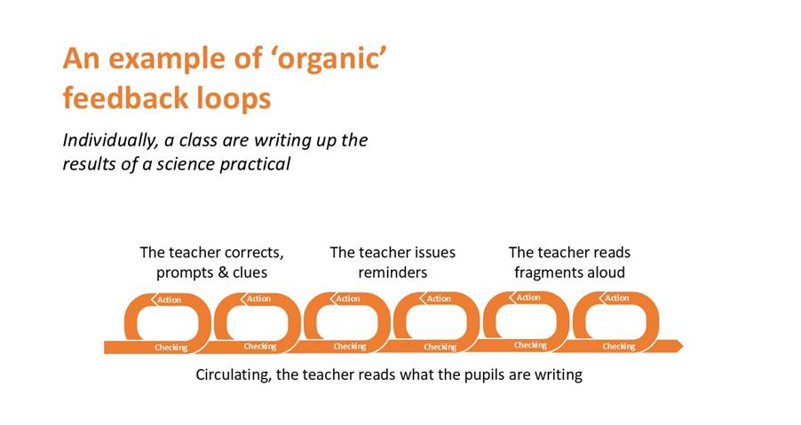 I think these organic processes, often less visible and more subtle, can be a little neglected in discussions of ‘checking for understanding’. If, instead of thinking ‘When shall I check for understanding in this lesson?’, we think ‘How will feedback loops be operating in this lesson?’, then it can potentially result in better teaching.
